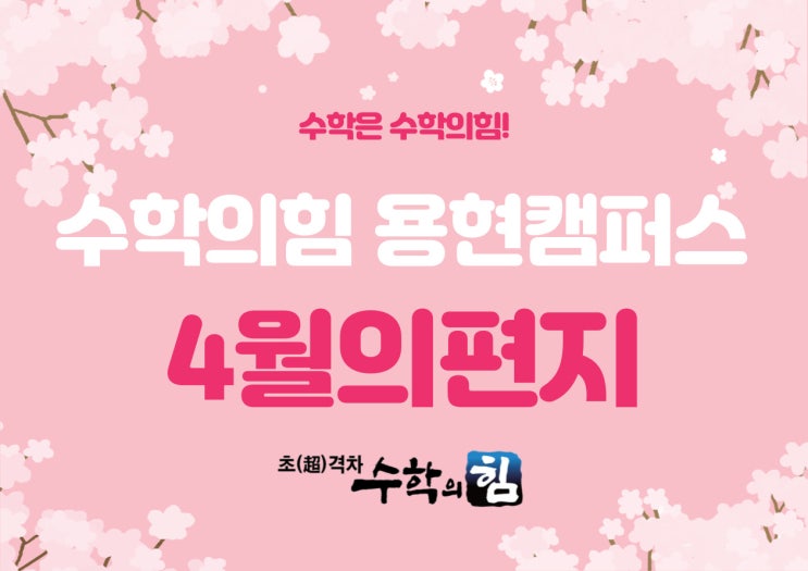 안녕하세요 수학의힘 용현캠퍼스 오지연 원장입니다. 오늘은 4월 첫날 ! 설레이는 1일 시작입니다. 따뜻한 봄바람과 함께 벚꽃이 피어나는 4월이 찾아왔습니다. 새로운 시작의 설렘이 가득한 계절이지만, 동시에 우리 아이들에게는 중간고사라는 중요한 도전이 시작되는 시기이기도 합니다. 이 시기의 방향과 습관이 올 한 해의 결과를 결정짓는다고 해도 과언이 아닙니다. 그래서 저는 늘 말씀드립니다. “지금의 하루가, 아이의 미래를 만든다”는 것을. 제가 항상 강조하는 ‘그릿(Grit)’은 시험대비를 통해 만들어집니다. 끝까지 풀어내고, 틀린 문제를 다시 붙잡고, 포기하지 않는 이 시간이 결국 아이의 실력을 바꿉니다. 수학의힘 용현캠....... <img src="https://blogthumb.pstatic.net/MjAyNjA0MDFfMjE2/MDAxNzc1MDA4NDYwNDAw.a6k8X2uYjRXr3EzvQFD2WswMNtW0dtB0voIoW_zdKxgg.9xCcum2nSEZrfE6KFcuM5_iYITXY2paFmsIcFwUwjTUg.JPEG/4%BF%F9%C0%C7%C6%ED%C1%F6-_2_-001.jpg?type=s3" />