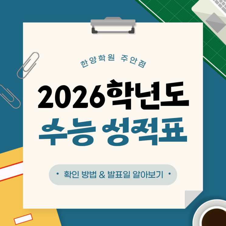 안녕하세요 한양학원 주안점입니다 수험생 여러분, 수능이 끝났다고 끝이 아니죠! 대학 지원을 위해 꼭 필요한 성적표 확인 및 제출 서류 준비 방법을 정리했어요. 우리 학원 학생들도 일정 놓치지 말고 꼼꼼히 챙겨봐요! ✨ 수능 성적표 통지일은 언제인가요? 주목! 2025년 12월 5일 금요일에 공식 성적이 발표됩니다. 12월 5일 성적표 발표 직후, 29일 원서접수까지 약 3주! 이 짧은 기간 동안 여러분의 합격 여부가 결정됩니다. 2026학년도 수능 성적표 배부 방법 안내 수능성적표는 수험생의 신분에 따라 배부 방식이 다르기 때문에, 본인에게 해당하는 방법을 꼭 확인해야 합니다! 1. 고등학교 재학생 / ....... <img src="https://blogthumb.pstatic.net/MjAyNTExMjhfMTU2/MDAxNzY0MjkxNTQ4MjM5.5X_ZvGGtg0zn2N9c9D4IuGj5BU3Fd2N3sudm_y0UKzEg.1rsB27Y7Qzza49p2bFiaDT7U7STQWjP98US2tbefv1Ig.PNG/%C1%A6%B8%F1%C0%BB_%C0%D4%B7%C2%C7%D8%C1%D6%BC%BC%BF%E4._%2812%29.png?type=s3" />