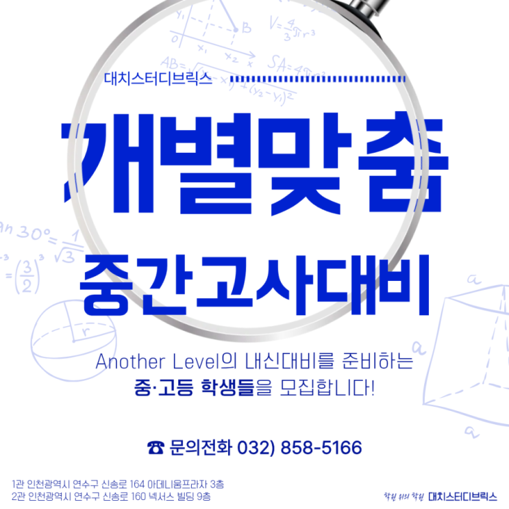 [송도수학학원] 중간고사대비 수학 맞춤수업 개강 !