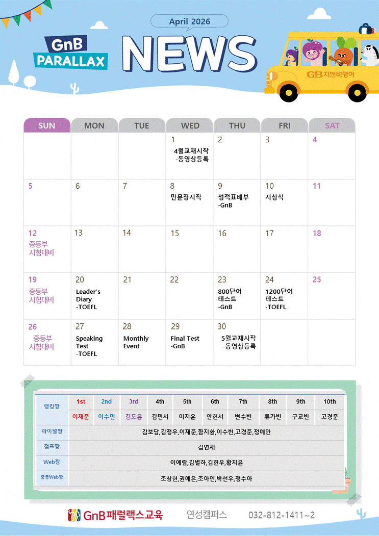 동춘동 영어학원) 인천 동춘동 GnB 연성어학원 - Campus News (2026.04)