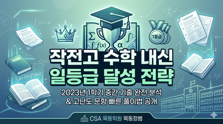 본 게시글은 작전동 작전고 수학 내신 3개년 통합 분석의 후속 작업으로, 연도별 상세 기출 분석 시리즈입니다. [ 시리즈 구성 ] ① 작전고 수학 내신 기출 3개년 통합 | 1학기 중간 출제 경향 기록 ② 작전동 고등 수학 전문 목동장쌤의 작전고 시험 대비 전략 | 내신 기출 3개년 통합 분석 ③ 작전동 작전고 수학 내신 일등급을 위한 고난도 기출 문제 추천 | 계양구 전체 3개년 통합 분석 ④ 2023년 1학기 중간고사 개별 분석 ← 현재 글 ⑤ 2024년 1학기 중간고사 개별 분석 (예정) ⑥ 2025년 1학기 중간고사 개별 분석 (예정) 3개년 통합 분석에서 파악한 출제 경향을 바탕으로, 각 연도별 시험의 구체적 특징과 고난도 문항 풀이 전략을 제....... <img src="https://blogthumb.pstatic.net/MjAyNjAzMzBfMTcx/MDAxNzc0ODA0ODcwMDU0.UVtNbAtAUQx3Pvh4OSBn0dAZ9c_JQ9B9IzHEwBUlCw8g.VN91ESEJO9lxSf68GWkZCt95TBGjEaoZwNMX8LA1kMog.PNG/2023%B3%E2_%C0%DB%C0%FC%B0%ED_1%C7%D0%B1%E2_%C1%DF%B0%A3%B0%ED%BB%E7.png?type=s3" />
