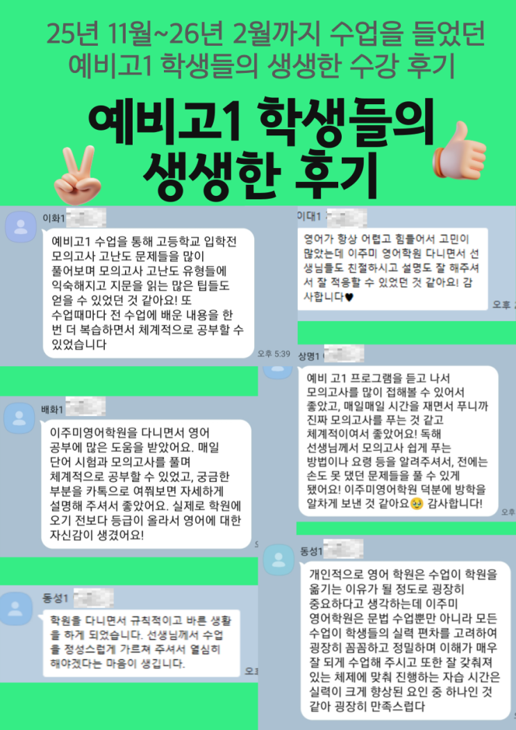 [이주미영어학원] 25년 예비고1 학생들의 수강 후기 :)