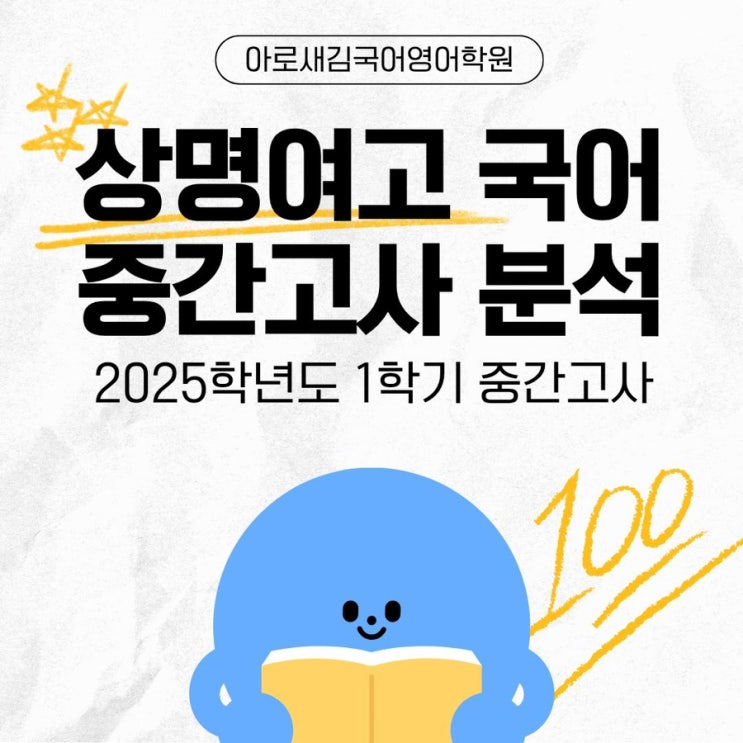 오늘은 상명여고 고1 국어 시험 출제 경향 분석을 해 보겠습니다. 상명여고는 국어 교과서는 공통국어1 창비입니다. 시험 범위는 교과서 문법 영역, 문학 영역 그리고 나눠주시는 문학 유인물입니다. 문법 비중이 큰 시험이라서 개념을 탄탄하게 하고 다양한 문제 풀이로 준비를 해야 합니다. 문학은 외부 지문도 나오는 편이라 제시문과 관련된 다양한 작품 공부도 필요합니다. 관련 주제, 관련 표현법 중심으로 연계 작품을 분석해 보는 것도 좋습니다. 아로새김학원은 “반복학습”을 중요시 합니다. N회독으로 실수를 줄여갑니다. 학교 필기도 꼼꼼하게 하고 학원에서 반복 학습을 통한 기본을 다지고 실력편으로 나아갑니다. 카카오톡 채널....... <img src="https://blogthumb.pstatic.net/MjAyNjAyMTJfMTgg/MDAxNzcwODgzMjc1MzI5.OCmC5kx2gZQEk4Vxb8hm9G8u3RpsMpo_txP6jVj5hfcg.btn__1rCCdhgXpkxcltOdw-_GVLfeiQPpWu-XooARZwg.JPEG/IMG%A3%DF9603.JPG?type=s3" />