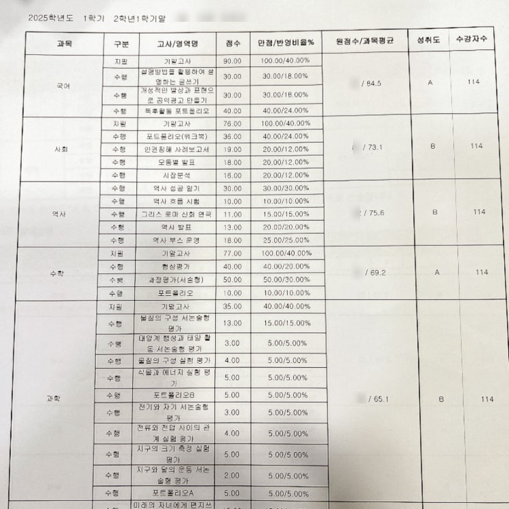 안녕하세요. 새솔학원 김원장입니다. 몇 년 전 제가 올렸던 '중학교 성적표 제대로 읽는 법'포스팅이 무려 3,000회 이상의 조회수를 기록하였습니다. 그만큼 많은 학부모님이 '숫자 너머의 진실'을 궁금해하신다는 뜻이겠지요. 그런데 요즘 중학교 성적표에서 표준편차가 삭제되었습니다. 이제 성적표만 봐서는 우리 아이가 고등학교 가서 몇 등급을 받을지 예측하기가 어려워졌습니다. 하지만 걱정 마세요. 새솔학원이 학교알리미 최신 공시 자료를 바탕으로 그 이면의 진실을 분석해 드리겠습니다. 또한, 2026년 첫 시험을 앞둔 우리 아이들의 성적표를 받기 전, 학부모님들이 반드시 아셔야 할 A등급의 함정과 변화된 입....... <img src="https://blogthumb.pstatic.net/MjAyNjA0MjFfMTcy/MDAxNzc2NzY0NTMyNDgy.sl8ecmWYjXTR0dJONSQwEPucc_e4zfPTTuMAcPLv-dcg.ef4hz_iYVVs6qeFCRIkjrUB5Hq-GVvzFowPe8Pr0BJsg.JPEG/IMG_6792.JPG?type=s3" />