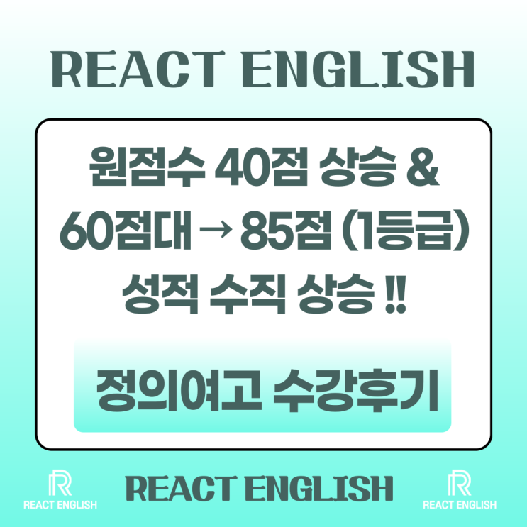 정의여고 1학년 원점수 40점 상승 & 1등급 달성 학생 수강후기 [리액트영어학원]