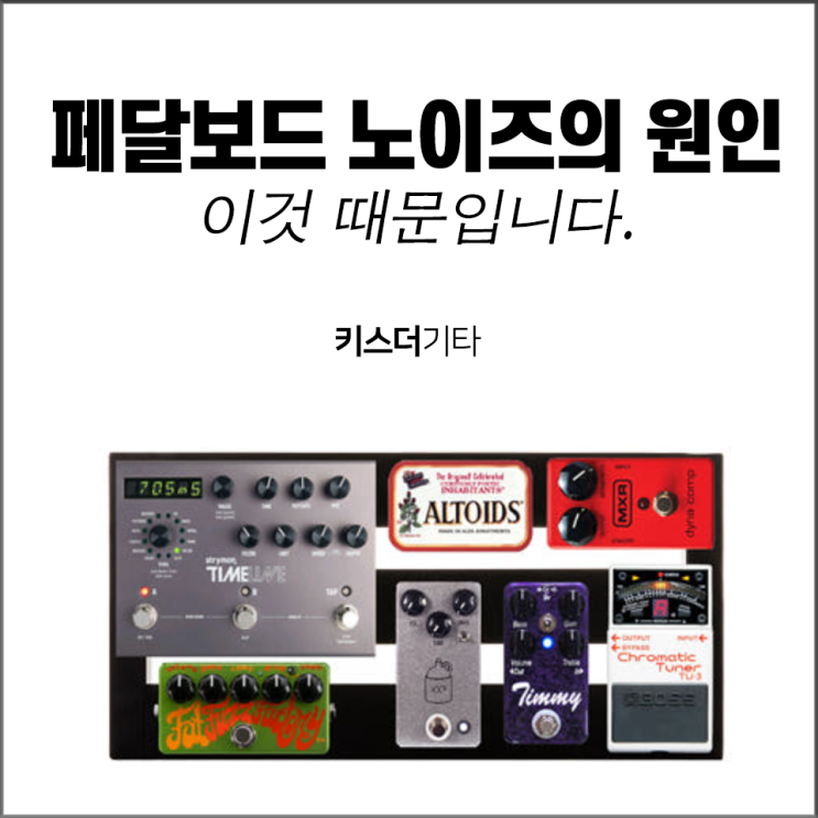 페달보드를 만들다 보면 노이즈 때문에 고생하는 분들이 많습니다. 노이즈의 원인은 여러 가지일 수 있는데요. 그중에서 가장 먼저 점검해봐야 할 것은 바로 이것입니다. 아래 영상에서 확인해 보세요. p.s. 요즘 남쇼에 나온 뉴럴 DSP 쿼드 코텍스 미니(Quad Cortex Mini) 아주 핫합니다. 쿼코미니 아주....미쳤군요....하지만 악마의 유혹에 흔들리지 마세요. ㅜㅜ 멀티도 편리하고 훌륭한 장비이지만 처음부터 모든 것이 들어 있는 환경을 접하는 것보다 하나씩 직접 연결하고 조절하고 고민해보는 과정이 기타 실력을 오래 가져가는 데 훨씬 큰 도움이 됩니다. 기타를 하루이틀 치고 말 것이 아니라면 멀티는 가급적 멀리하고 아날로그를 사....... <img src="https://blogthumb.pstatic.net/MjAyNjAxMjVfNDcg/MDAxNzY5MzIxODc0NDcx.cTkmDxoMKqR9VIBDg6fVEt9gICGJ3ZVNa5rQ1sDI2Rkg.fbaoUPWZ-4r7Bv0lauFqlRAYNWnGTjrgW76qAR7kx74g.PNG/44444.png?type=s3" />