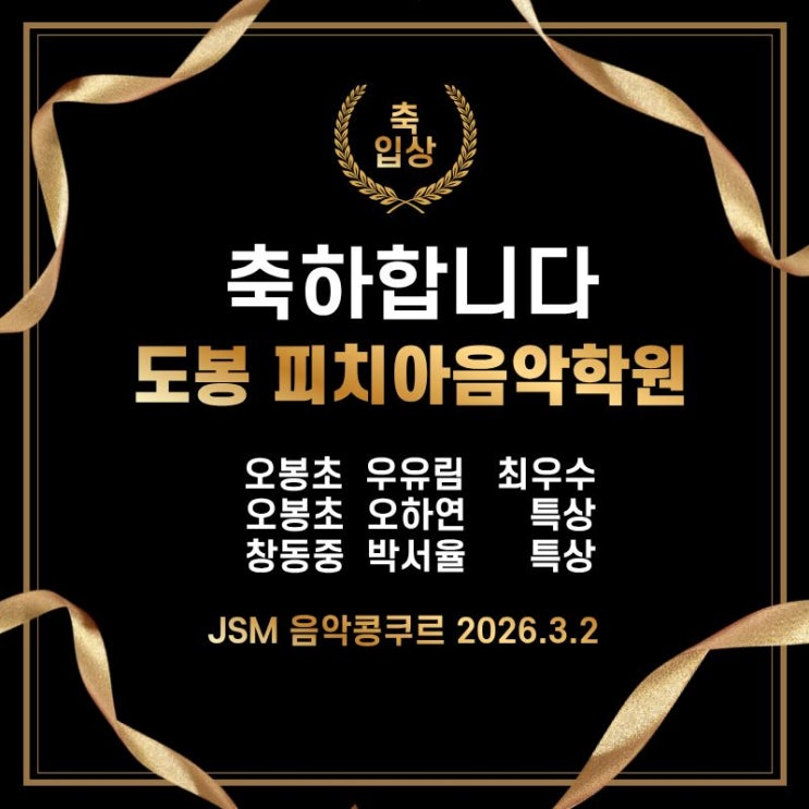 도봉동 피치아 피아노학원 2026년 첫 콩쿨 스타트~!