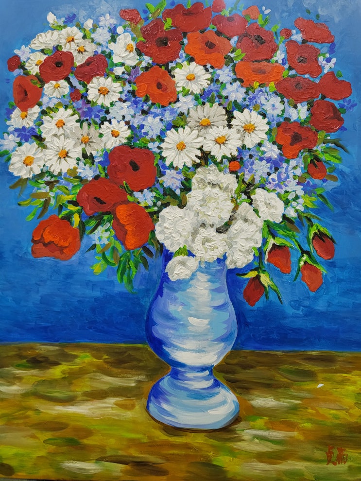 안녕하세요 :) 오랜만에 인사드려요 오늘은 최근 성인취미미술 수업에서 완성된 꽃 주제 아크릴 작품들을 소개해드릴게요. 꽃은 언제 그려도 참 매력적인 소재예요. 그리는 방법에 따라 분위기가 확 달라지기도 하고, 질감을 살리는 재미도 있어서 그릴수록 빠져드는 주제랍니다 1. 집에 걸어두고 싶은 화사한 꽃 한 다발 파란 배경 위에 화병 가아득 담긴 꽃다발입니다. 붉은 꽃과 흰 꽃이 강하게 대비되면서 그림이 굉장히 화사하죠? 이 작품은 수강생분께서 따님 댁에 걸어둘 그림으로 직접 작업하신 작품이에요 인테리어로 집에 걸어두면 분위기도 더 화사해질 것 같아요! 이 그림은 멀리서 바라볼 때와 가까이에서 자세....... <img src="https://blogthumb.pstatic.net/MjAyNjAyMjdfMjI1/MDAxNzcyMTE5MDA5NjYz.ugQBpi6u5mEqrzF3okMW7SF1-55iNi0piAbRTSQMldog.mi9iGXW93usgow-_YDWske5lECFk-PZw-7KyOVE9on0g.JPEG/KakaoTalk_20260226_144229936_02.jpg?type=s3" />