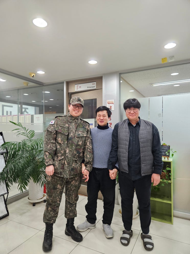 정교졸업생이 군입대 후 첫 휴가 나와서 선생님들께 인사드리러 방문했답니다. 찾아와줘서 얼마나 고맙고 반가웁던지요~~!! 학원 붙박이로 열심히 공부하던 친구였는데 이렇게 건장한 청년이 되어 돌아오니 캡짱 멋있네요~!!^^ 듬직하고 건강해보이는 모습에 마냥 흐뭇한 시간이었습니다. 남은 군생활 건강하게 잘 마치길 바래요~*^^* <img src="https://blogthumb.pstatic.net/MjAyNTEyMDVfMTA4/MDAxNzY0OTI4MTIwNjk0.GmQn7xeCIbB8oupeXF27UdLmjN9JGE9b7WTcoDB2hN4g.XALI8YjYv31HZAisPOi7ZZkfwpU7mUkYBF2tZwIZtXwg.JPEG/%C0%CC%BC%F6%C7%F6.jpg?type=s3" />
