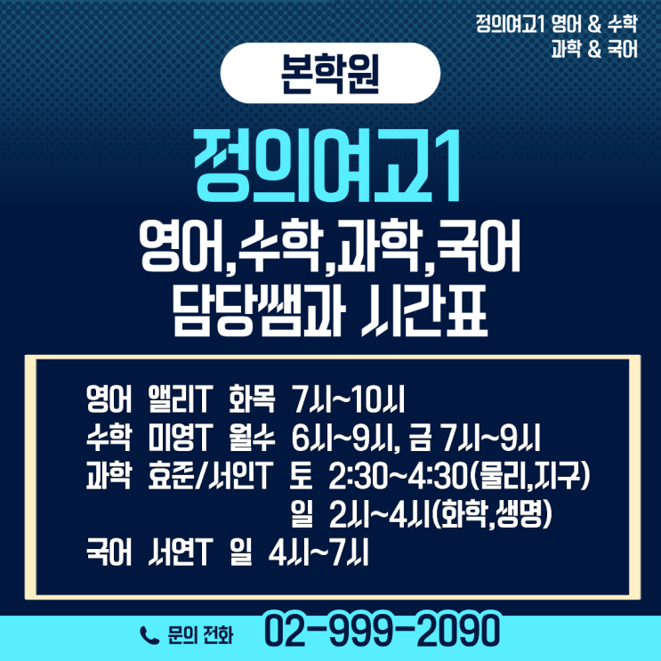 [창동 본학원] 정의여고1,창동고1,상계고1 담당쌤과 시간표 배정