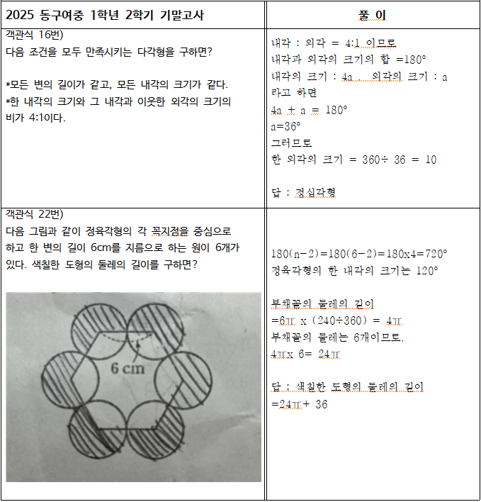동구여중 수학 내신기출 분석 (25' 1학년 2학기 기말고사)_수미사/성북관