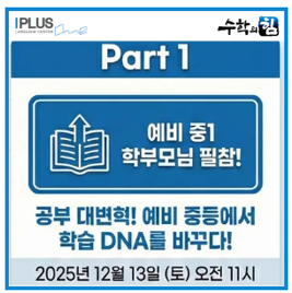 필독! 우리 아이 중등 성공의 길, 아이플러스원 수학의힘이 제시합니다! 2026년 예비 중등 전략설명회
