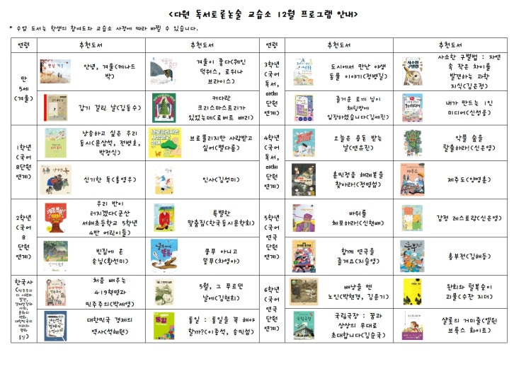 12월 수업 프로그램 안내