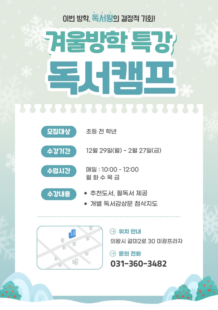[안양/평촌/의왕 국어학원] 겨울 방학 특강 - 독서캠프