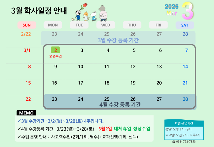 3월 1일 3월 2일 (대체공휴일) 휴원 합니다 <img src="https://blogthumb.pstatic.net/MjAyNjAyMjRfNSAg/MDAxNzcxOTMxNjI2NTUx.XPdKPQYKgIBHCRB-9-QsGFwPkBVtqxRghwdFFZWNm70g.d2nqUOlEfoG98bJ-a2pve_MbV78hyHyxlxnBTvQHFHYg.PNG/IMG_2025.PNG?type=s3" />