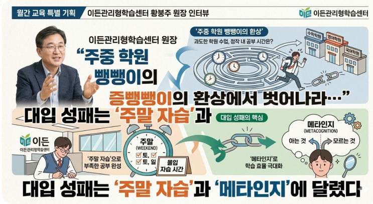 [앤써통 스페셜 인터뷰] 이든관리형학습센터 황붕주 원장“주중 학원 뺑뺑이의 환상에서 벗어나라… 대입 성패는 ‘주말 자습’과 ‘메타인지’에 달렸다” 하남독학재수학원