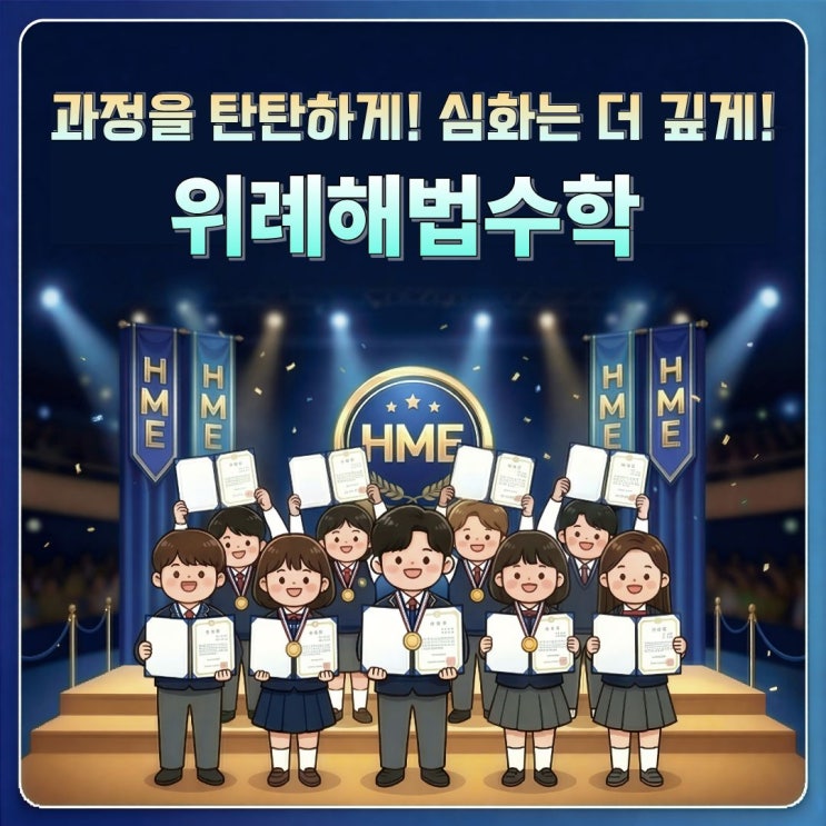 요즘 위례해법수학학원에 참 기분 좋은 소식이 하나 있었어요 HME 해법수학경시대회에서 우리 위례해법수학 친구들이 우수한 성과를 거두었다는 소식을 전하려고 합니다. 경시대회라고 하면 “어려운 문제만 잘 푸는 아이들만 나가는 거 아닌가요?” 이렇게 생각하시는 분들도 계시죠. 절대 아닙니다!! HME 해법수학경시대회에는 수학 개념을 이해하고 사고력 문제 해결 과정을 균형 있게 평가하는 대회입니다. 수업에서 다져온 개념과 사고력이 그대로 결과로 이어졌다는 점에서 아이들도 지도하는 저희도 더 의미 있게 느꼈습니다!! 사실 이번 수상 소식 중에서 조금 더 뿌듯했던 부분이 하나 더 있었어요. 바로 우수지도자상 수상입니다. 이 상....... <img src="https://blogthumb.pstatic.net/MjAyNjAzMDNfMjIw/MDAxNzcyNTM5MTQyMDk5.MfzB-wyOcOvdSg1yxL19ThOSLe7Rhnnbd4OMp614nQEg.3VX3e2vju1Zsk5itLK6KHKtv4YItkC6-C4-P_0S_mPsg.JPEG/%C1%A6%B8%F1%C0%BB_%C0%D4%B7%C2%C7%D8%C1%D6%BC%BC%BF%E4._%2812%29.jpg?type=s3" />
