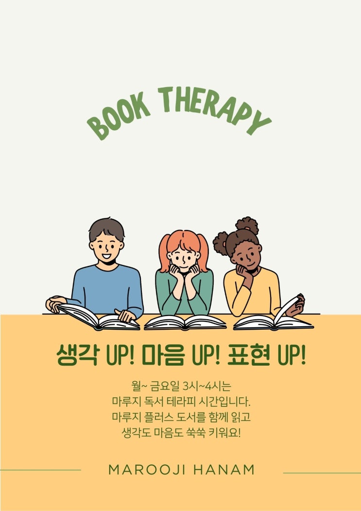 안녕하세요? :) 하남 스피치 대표학원, 스피치 마루지 하남미사센터입니다! 마루지의 특별한 도서관이 있습니다! 바로바로, 마루지 플러스 독서 테라피인데요. 월요일 부터 금요일까지 3시~4시 에 진행하는 독서 테라피! 생각도 마음도 표현도 쑥쑥 커지는 마루지 독서 테라피! 많이 참석해주세요! 교육 상담 : 031.796.3111 카카오톡 채널 : 스피치 마루지 하남미사센터 http://pf.kakao.com/_ejMij/chat <img src="https://blogthumb.pstatic.net/MjAyNjAzMDNfMjk3/MDAxNzcyNTE2MTkxNzU1.s6VKQ47nmtIEFAYF11gRxTIUB2kKFIG-LlyubWRKEV8g.6gJFIiXRfkXmYf9xlK1edQXtzxUEDICf5ifOeZKalSMg.JPEG/%B8%B6%B7%E7%C1%F6_%B5%B6%BC%AD%C5%D7%B6%F3%C7%C7_%B5%B5%BC%AD%B0%FC.jpg?type=s3" />