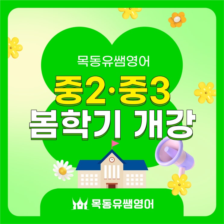 2026 중2 중3 봄학기 개강 목동유쌤 영어학원