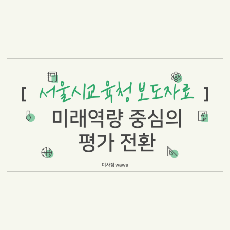 안녕하세요! 서울시교육청 보도자료 「서울시교육청, 미래역량 중심의 평가 전환 시작한다」(2026.2.10.) 쉽게 정리해드립니다. 하남 미사지역 중학교 고등학교 지필고사 수행평가 자기주도훈련 2026년부터 학생평가가 이렇게 바뀝니다 – 서울시교육청, ‘미래역량 중심 평가’로 전환 시작 요즘 학교 시험이 예전과 많이 달라지고 있다는 이야기, 들어보셨나요? 서울시교육청이 2026학년도부터 학생 평가 방식을 크게 바꾸겠다고 발표했습니다. 핵심은 단 하나입니다. “정답을 맞히는 시험”에서 → “생각하는 힘과 성장 과정을 보는 평가”로 바꾸겠다 이번 변화가 우리 아이에게 어떤 의미인지, 하나씩 쉽게 정리해드리겠습니다. 1️....... <img src="https://blogthumb.pstatic.net/MjAyNjAyMjBfMTI5/MDAxNzcxNTg1MTg5Njkz.fUkA65OzH6dov6KeGOAJx5a2SdcA_JJr4YBLE3MNkPIg.iJpJ6JEfynDYduIp6djYJgpiC6qOOZnBbwURlaHHqVIg.PNG/%C1%A6%B8%F1%C0%BB_%C0%D4%B7%C2%C7%D8%C1%D6%BC%BC%BF%E4._%281%29.png?type=s3" />
