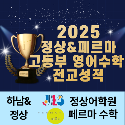 안녕하세요 정상어학원 입니다 ^^ 정상어학원 페르마수학 고등관 재학생들이 2025년 영어·수학 내신에서 압도적인 전교권 성적을 거두었습니다. 이 학생들은 대학 입시에서 가장 중요한 내신 성적에서 1등급을 넘어 전교 최상위권에 오르며 그 실력을 다시 한 번 입증했습니다. 매 시험마다 최선을 다해 온 우리 고등부 학생들에게 아낌없는 박수를 보냅니다. 우리 학생들이 입시라는 긴 레이스의 결승선을 통과하는 그날까지, 지치지 않고 끝까지 파이팅하길 바랍니다. 중등부 후배 여러분도 선배들을 본보기로 삼아 자신감을 가지고 꾸준히 공부하도록 해요 ^^ 새학기 하남시 영어수학전문학원 하남정상어학원,미사정상어학원 하남페르마수학, ....... <img src="https://blogthumb.pstatic.net/MjAyNjAyMjFfMTMw/MDAxNzcxNjU2NTAwMTIx.0B5EwRHSmPiKGqZ55EtZfSyQeeZTkdvXj5Yg4QMy-jog.hOT0LjABsFpMq0YB7hBIuMgpWqo0bS-PxWlt2dVkGPsg.PNG/%BF%B5%BE%EE_%B0%ED%B5%EE%BA%CE_%C0%FC%B1%B3%B1%C7_%B8%ED%B4%DC-_%BA%B9%BB%E7%BA%BB_%281%29_%283%29.png?type=s3" />