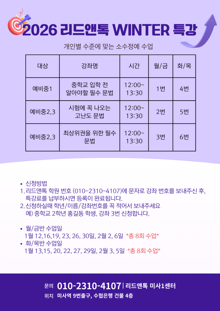 2026 겨울방학특강 2탄!!!