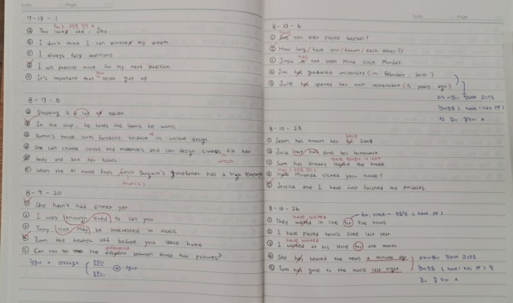 내신 준비를 하다 보면 어느 정도는 그 학생의 점수가 예상됩니다. 내신 준비 기간 동안 풀리는 시험지의 틀린 개수에서 학생의 점수가 크게 벗어나지 않기 때문입니다. 매번 문법 문제를 틀리는 학생 매번 아는 문제도 실수로 틀리는 학생 매번 문제를 대충 읽는 학생 매번 같은 부분에서 틀리는 학생 수학도 아닌 영어 과목에서 오답노트를 쓰게 하는 이유입니다. 이 오답노트도 정성 들여 쓰는 학생이 있는가 하면 하기 싫은 숙제처럼 본인도 알아보기 힘들게 쓰는 학생도 있습니다. 그래도 억지로라도 오답노트를 쓰는 경우는 그나마 괜찮습니다. 영어 학습을 너무 늦게 시작했거나 단어 암기를 힘들어하는 학생들은 처음 보는 문장을 해석하....... <img src="https://blogthumb.pstatic.net/MjAyNTEyMDFfNDMg/MDAxNzY0NTgxMTI4MTk5.NRsDBeLr-b9b5ijz6HSIRzmCTWnLX4SQHrx6avroL6Ag.AB9GFSPFChQAXwQpLq3tpRG2Sb6xFpZAO9vkZE2Oqfsg.JPEG/900%A3%DF20251201%A3%DF154236.jpg?type=s3" />