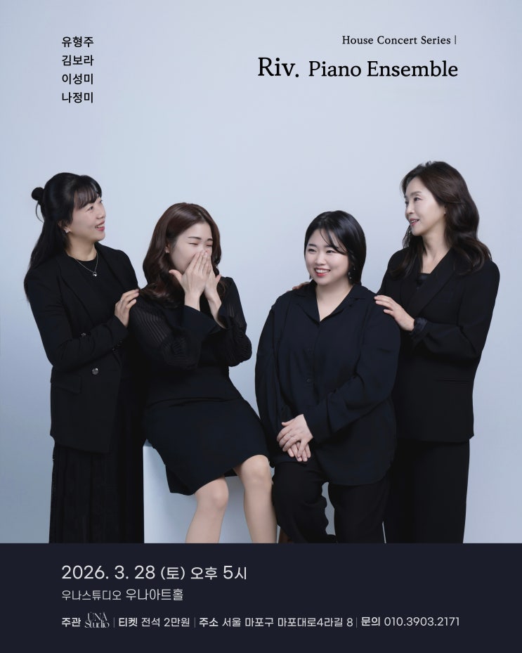 음악이 흐르는 순간, Riv Ensemble .........샐리쌤 연주회 소식 음악은 한 음에서 시작됩니다. 하지만 여러 음이 모일 때, 그 소리는 하나의 흐름이 됩니다. Riv Ensemble은 바로 그 순간을 함께 나누기 위해 만들어진 앙상블입니다. ‘Living Flow’라는 의미처럼, 음악이 살아 움직이며 흐르는 순간을 연주자와 관객이 함께 느끼는 시간을 만들고자 합니다. 2026년 3월 28일. 토요일 리브 앙상블 연주회 아이들에게 음악을 가르치는 일은 단순히 연주 기술을 전달하는 것이 아니라 음악을 느끼고 표현하는 경험을 함께 나누는 일이라고 생각합니다. 그래서 무대에서 느끼는 음악의 흐름과 감동을 아이들의 레슨 속에서도 자연스럽게 나누고 싶....... <img src="https://blogthumb.pstatic.net/MjAyNjAzMjRfMjQy/MDAxNzc0Mjg5NjYzNjQ4.CrGa_geuITZJOEX2KqhuLJLjct557oy9ldLtW1ry6gYg.EJWWoDVDL9nqjhFcAX4xdguPAoU-uIuuiNKln-q8Ut4g.JPEG/%B8%AE%BA%EA%BE%D3%BB%F3%BA%ED.jpg?type=s3" />