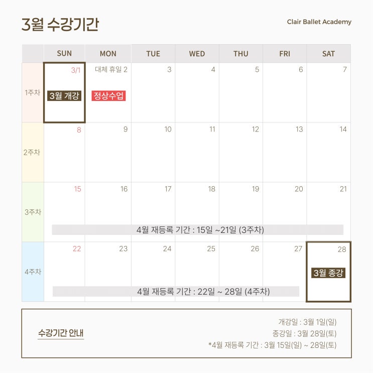 CMS강일미사영재교육센터 봄학기 일정 (3~5월)