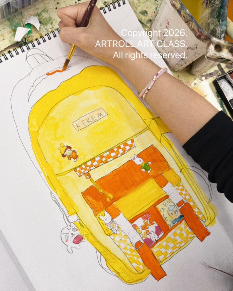 안녕하세요. 용인 처인구 역북동에서 탄탄한 실기 실력으로 초등미술을 지도하고 있는 아트롤 미술학원 입니다. 내 책가방 속 물건 아트롤 미술학원 초등부 친구들의 3월 1주 차 수업 주제는 “내 책가방 속 물건”입니다. 새 학기를 맞이하여, 나의 책가방을 그리고 그 안에 학용품을 그려보는 수업을 하고 있답니다. 노오란 색의 귀여운 가방을 그린 함박초등학교 2학년 학생의 작품 정말 멋지죠? 가방 안에 학용품들도 그려서 붙여주면 더 멋진 작품이 완성될 것 같습니다. 매일매일 집중하고 열중하는 아트롤의 초등부 친구들! 3월에도 즐거운 미술수업하자~ <img src="https://blogthumb.pstatic.net/MjAyNjAzMTJfNzYg/MDAxNzczMzI2NTgxODQx.zFDZtKFZBBmUdCAWU8BKcKNZaJZlIsYWK09VaBHeYOMg.2Rc8dlt7UgONpVALoIGxGR5bMLJRK_ZJEiuU2nXEg1kg.JPEG/IMG%A3%DF2548.JPG?type=s3" />