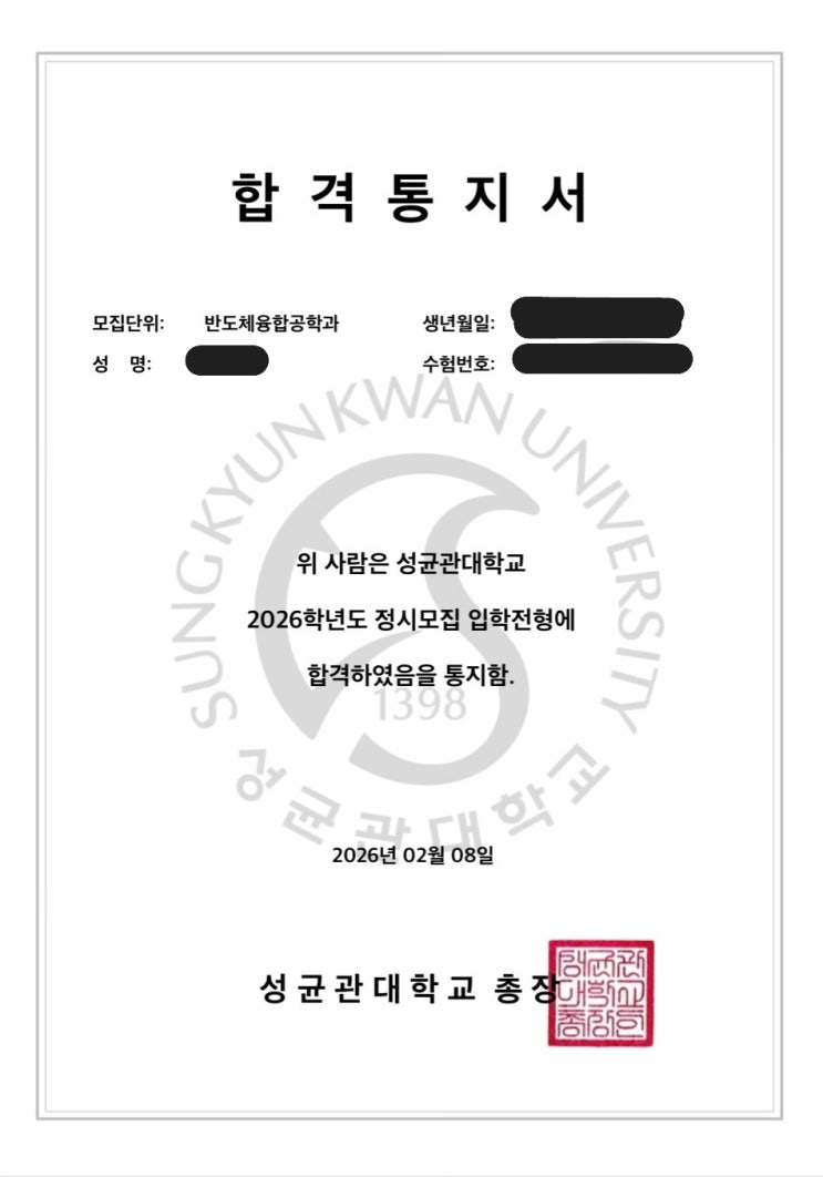성균관대 반도체융합공학과합격