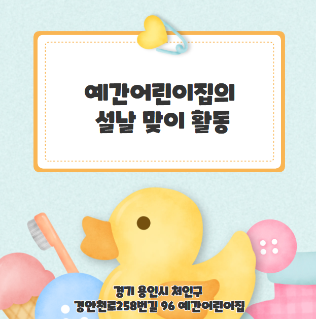 안녕하세요. 전통과 자연 속에서 아이들이 바르게 자라나는 예간어린이집입니다. 설날을 맞이하여 우리 아이들과 함께 우리 고유의 명절 설날에 대해 알아보는 시간을 가졌습니다. 설날이 어떤 날인지, 왜 가족들이 모이고 세배를 하는지 이야기를 나누며 전통문화의 의미를 자연스럽게 배워보았습니다. 아이들은 먼저 세배의 의미와 세뱃돈의 의미를 배웠습니다. 우리 어린이집의 어른이신 원장님과 조리사님께 고운 마음을 담아 세배를 드리고, 따뜻한 덕담을 들었습니다. 이후 받은 세뱃돈으로 무엇을 하고 싶은지 각자의 생각을 이야기하며 즐거운 시간을 보냈습니다. 또한 세뱃돈은 단순히 돈이 아니라, “건강하게 자라고 복을 많이 받으라....... <img src="https://blogthumb.pstatic.net/MjAyNjAyMTlfMjYg/MDAxNzcxNDg1MTY1Mjkx.Js2H60SGPw-0apBdo5nNArVIxdv6zEBB6eVRezqUAR0g.Gfysvt2yg2RzL7Qb6bnRJqBo2p1QHogRgeaM0dmUaAsg.PNG/image.png?type=s3" />