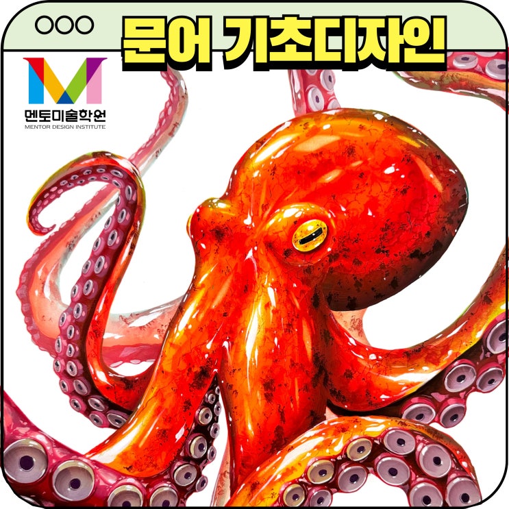 용인미술학원은 멘토미술학원, 문어 기초디자인 연출, 개체묘사 같이 배워봅시다!!