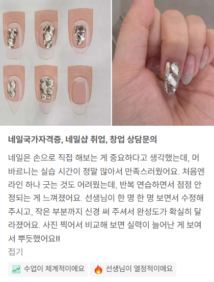 “처음엔 걱정했는데 지금은 자격증 합격까지!” 안녕하세요 :) 머바르니뷰티아카데미입니다. 오늘은 학원을 고민하고 계신 분들을 위해 실제 수강생의 리얼 후기를 소개해드리려고 해요! 처음 시작할 때는 “내가 할 수 있을까?” “자격증 시험이 어렵지 않을까?” 많은 고민을 하고 시작하는 분들이 정말 많아요. 하지만 머바르니뷰티아카데미에서는 기초부터 실무까지 체계적으로 배우기 때문에 처음 시작하는 분들도 충분히 합격할 수 있습니다 :) 수강생 리얼 후기 수강생 A님 “처음에는 완전 초보라 걱정이 많았는데 선생님이 하나하나 자세하게 알려주셔서 이해하기 너무 쉬웠어요! 실습도 많이 할 수 있어서 시험 준비하는데....... <img src="https://blogthumb.pstatic.net/MjAyNjAzMjNfMTgz/MDAxNzc0MjU1ODg1OTAx.wf2ARt5sSc_4Rpa7rYsid_7m9GWapNwAr7sxwBCbj6kg.Pd-jEjGpjSEHzRRHX5CNlh3fT4hQpVddBzbhvV6VnPkg.PNG/image.png?type=s3" />