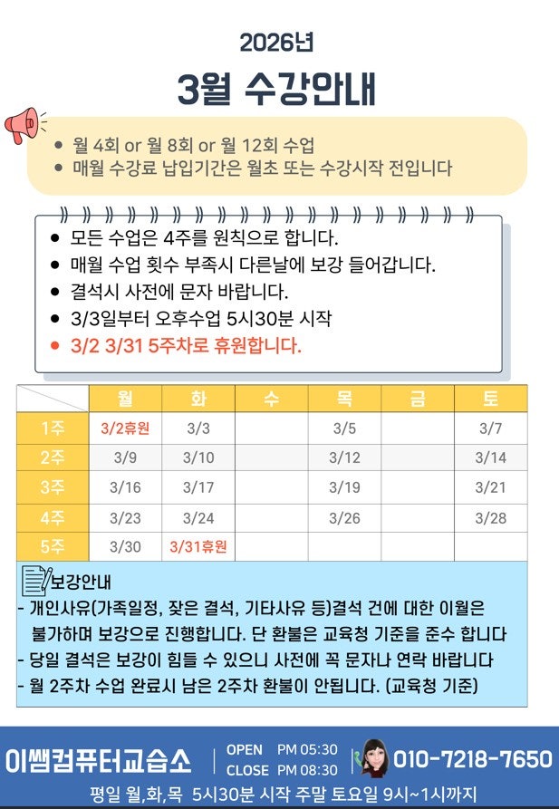 3월 수강안내