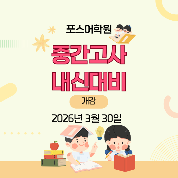 포스어학원 중등 1학기 중간고사 내신대비 개강