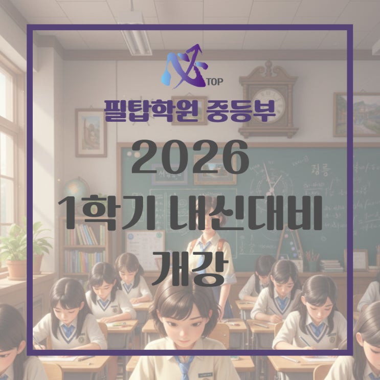 안녕하세요! 따스한 봄기운과 함께 새 학기가 시작된 지도 벌써 한 달이 다 되어갑니다. 새로운 환경에 적응하느라 분주했던 우리 아이들에게 이제 가장 중요한 첫 관문인 1학기 중간고사가 다가오고 있습니다. 새 학년의 첫 시험 성적은 단순히 점수 이상의 의미를 갖습니다. 한 학기 동안의 학습 자신감을 결정짓고, 공부에 대한 동기부여를 좌우하는 결정적인 이정표가 되기 때문입니다. 이에 필탑중등부는 다음 주부터 본격적인 '중등 중간고사 대비 체제' (반별 상이) 에 돌입합니다. 22년이라는 긴 시간 동안 변치 않는 신뢰를 받아온 이유 지금 확인해 보세요. 강산이 두 번 변하는 시간 동안 저희는 이 지역 중학교들의 출제 경....... <img src="https://blogthumb.pstatic.net/MjAyNjAzMjZfNjYg/MDAxNzc0NTI2MDMwNTUy.UxCxCrEYPsr5MxfpGmUI971DaSUMKS1xTLwwp8WycsYg.CNAXRF2AAloiAzfCzUlc9cHxPydR93E0xOGs-SDrr6Ug.JPEG/%EB%B3%B5%EC%82%AC%EB%B3%3F_%EB%B3%B5%EC%82%AC%EB%B3%3F_%3F%95%84%3F%83%91_%EC%A4%91%EB%93%B1%EB%B8%94%EB%A1%9C%EA%B7%3F_%3F%91%9C%EC%A7%3F.jpg?type=s3" />