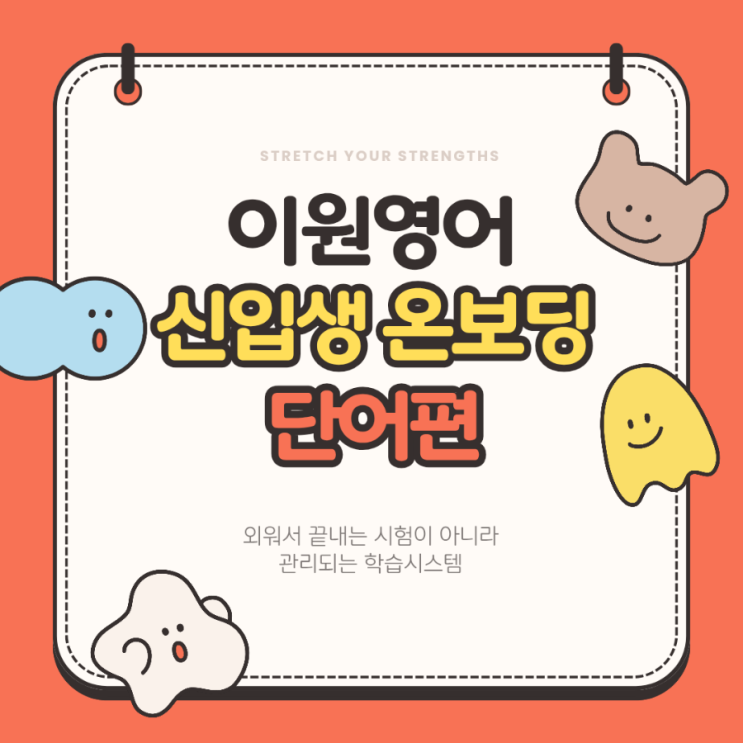 안녕하세요, 서천 이원영어입니다. 이번 포스팅에서는 학부모님들께서 가장 많이 궁금해하시는 단어시험 운영 방식과 이원영어만의 관리방식에 대해 안내드리려합니다. 1️⃣ 단어장 복습, 어떻게 하나요? 이원영어 단어시험은 단어장별 ‘총 3회독 구조’로 진행됩니다. 1회독 : → 단어 2개 / 한글 뜻 + 스펠링 2회독 : → 단어 4개 / 한글 뜻 시험 3회독 : → 단어 2개 / 예문 시험 회독이 올라갈수록 암기 → 정확도 → 활용 으로 자연스럽게 확장됩니다. 2️⃣ 단어시험은 언제 보나요? 정규수업 종료 후 바로 진행합니다. 요일은 반별로 고정되어 있습니다. 월·수 반 → 월 / 수 화·목 반 → 화 / 목 아이들이 시험 때문에 따로 부담을 느....... <img src="https://blogthumb.pstatic.net/MjAyNjAyMjdfMTU5/MDAxNzcyMTQ5OTk0NzQ5.9K1w9oQQxC1txy7g7Evl4Bo0W64KmBDV8SJ5hTSOVHog.nG7rLqg7eCybxmdlJ1bXqWJm7z2TNt7JPvXS8KwVjugg.PNG/900%A3%DF%C1%D6%C8%B2%BB%F6%B0%FA_%B3%EB%B6%F5%BB%F6_%C4%C3%B7%AF%C7%AE%C7%CF%B0%ED_%B1%CD%BF%A9%BF%EE_%C4%B3%B8%AF%C5%CD_%B9%E8%B0%E6_%BE%EE%B8%B0%C0%CC%C1%FD_%C0%AF%C4%A1%BF%F8_%C3%CA%B5%EE%C7%D0%B1%B3_%B5%F0%C0%DA%C0%CE_%C5%DB%C7%C3%B8%B4_%C0%CE%BD%BA%C5%B8%B1%D7%B7%A5_%C4%AB%B5%E5%B4%BA%BD%BA%A3%DF20260226%A3%DF0757.png?type=s3" />