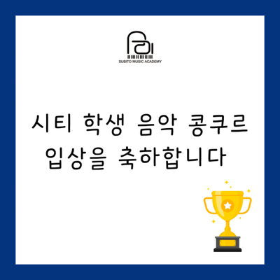 용인동백 피아노학원 바이올린학원 첼로학원 수비토음악학원 시티 학생 음악 콩쿠르 입상을 축하합니다 지난 2월 28일 토요일 용인동백 피아노학원 바이올린학원 첼로학원 수비토음악학원에서 18명의 학생들이 시티 학생 음악 콩쿠르에 참가하여 다음과 같이 훌륭한 성적으로 입상하게 되었습니다. 그동안의 노력과 꾸준함이 이렇게 빛을 발하게 되어 정말 기쁩니다. 콩쿨 무대는 단순히 상을 받는 자리가 아니라, 스스로의 한계를 넘어보고 성장하는 소중한 경험의 시간이었을 거라 생각됩니다. 연습실에서 반복하고 또 반복하며 다듬어 온 시간, 떨리는 마음을 이겨내고 무대 위에 선 용기, 그 모든 과정이 이미 값진 성과입니다. 결과와 상....... <img src="https://blogthumb.pstatic.net/MjAyNjAzMTdfMjQ3/MDAxNzczNzU0MDUyNTQ0._IeJc7_Y4z74eN0HWruLTNJ64oLuZDxgWKDLJ1zisYsg.MnT5C0Es93kds-5DJhHc6opnQb-NwbE5HgQb4KEOIIUg.PNG/%BA%ED%B7%CE%B1%D7%BD%E6%B3%D7%C0%CF.png?type=s3" />