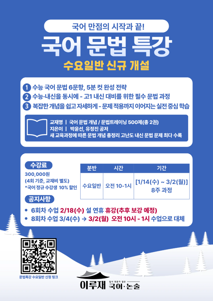 이루재 국어·논술 | [2026] 겨울학기 고등 문법 특강 수요일반 추가개설 안내