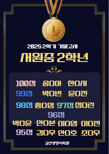 상현동 길선생영어학원의 자랑스러운 서원중2학년