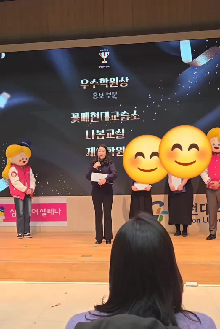 안녕하세요~! 죽전동 꽃메마을 / 새에덴교회 맞은 편 용인신촌초 용인신촌중 현암중 대지중 전문 :) 삼성영어셀레나 꽃메현대교실입니다! 죽전 초등영어 전문 교육의 중심! 우리 아이들의 즐거운 영어 성장을 책임지는 삼성영어셀레나입니다. 오늘은 정말 기쁘고 뜻깊은 소식이 있어 전해드리려고 합니다. 지난 1월 10일, 가천대학교에서 열린 ‘2026 비전 세미나’에서 저희가 당당히 우수학원상을 수상하게 되었습니다! 개원 3년, 결실을 맺다 문을 열고 아이들과 함께 호흡한 지 어느덧 만 3년이 되어가는 시점이라 이번 수상의 의미가 더욱 남다릅니다. 그동안 우리 용인신촌초 독정초 용인신촌중 대지중 현암중 학생들과 죽전동 초등영....... <img src="https://phinf.pstatic.net/image.nmv/blog_2026_01_17_3284/K3I4C6niFM_01.jpg?type=f480x480" />