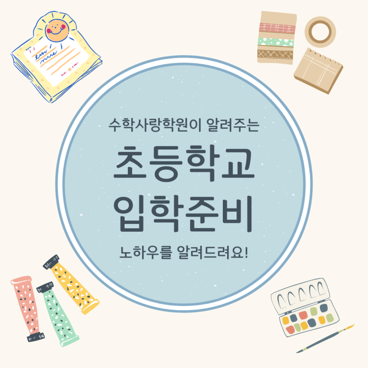 안녕하세요. 수학사랑학원입니다 이번 3월, 저희 둘째 해린이도 드디어 초등학교 1학년에 입학합니다. 첫째 때도 느꼈지만 초등학교 입학은 아이에게도, 부모에게도 정말 큰 변화입니다. 요즘은 공부 준비보다 학교생활 적응을 중심으로 준비하고 있습니다. ✔ 자기 물건 스스로 챙기는 연습 요즘 해린이와 매일 하는 것이 있습니다. ✔ 책가방 메보기 ✔ 실내화 넣고 꺼내보기 ✔ 물통 챙기기 아직은 서툴지만 스스로 하려고 하는 모습이 참 대견합니다. 초등학교에서는 이런 작은 습관들이 정말 중요합니다. ✔ 앉아서 집중하는 시간 늘리기 초등학교 수업은 40분 동안 진행됩니다. 처음부터 길게 앉아있는 것은 쉽지 않기 때문에 ✔ 책 읽....... <img src="https://blogthumb.pstatic.net/MjAyNjAyMjdfMzAw/MDAxNzcyMTIxMzI2MTA3.3gASllDc6bSrslK26zdLhCoHvnCPQONW1NaYPMaHyV0g.aDwu9_0TZCCUHE9KjJ-h4rSE9-TRy9pBJOiGrSHf0hEg.PNG/%C7%CF%B4%C3%BB%F6_%B1%F2%B2%FB%C7%D1_%C0%D4%C7%D0%C1%D8%BA%F1_%BA%ED%B7%CE%B1%D7_%C6%F7%BD%BA%C6%AE_%C0%CE%BD%BA%C5%B8%B1%D7%B7%A5_%B0%D4%BD%C3%B9%B0.png?type=s3" />