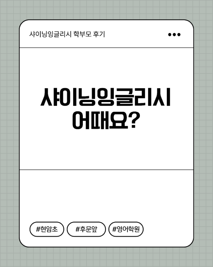 재원생 학부모님들 후기로 증명하는 샤이닝잉글리시! “아이 실력이 진짜로 늘고 있는 게 느껴진다” 학습 습관이 잡히고, 스스로 공부하려는 태도가 생기고, “영어를 싫어하던 아이가 달라졌다”는 이야기가 가장 많았어요. 알파벳도 어려워하던 아이부터 영어가 두려웠던 아이까지 아이 수준에 맞춰 천천히, 하지만 탄탄하게 실력을 쌓아가는 곳이라는 후기가 정말 많아요. 단순히 공부시키는 학원이 아니라 아이 마음까지 살피며 오래 다닐 수 있는 영어학원 그래서 부모 만족도도 높은 곳 ✔ 단어·문법·스피킹 단계별 실력 상승 ✔ 읽기·쓰기·말하기 균형 잡힌 커리큘럼 ✔ 파닉스부터 차근차근, 읽기가 자연스럽게 ✔ 진도만 나가는 수....... <img src="https://blogthumb.pstatic.net/MjAyNjAyMDhfMjQ2/MDAxNzcwNTUwODg5MTQ2.5-UXNmm-iGRV-6oSaRINHXH2XJwaBQxDkzYAyX498wIg.ZIjdUBotGI_IHe5-xlViPF_tnPDBX4yk-sVCvzw8qZ4g.PNG/900%A3%DF1%A3%DF20260208%A3%DF024652%A3%DF0000.png?type=s3" />