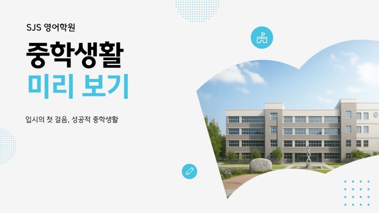 1. 중학교, 무엇이 어떻게 달라질까요? ① 수업 환경의 변화 초등학교는 담임교사가 대부분의 수업을 맡지만, 중학교는 과목별 전담 교사가 수업을 진행합니다. 교실 이동이 잦아지고, 한 교시 수업 시간도 길어집니다. 한 교시 45~50분 집중 필요 교실 이동 → 준비물 관리 능력 중요 핵심 포인트: ‘집중력’과 ‘자기 관리’가 성적의 출발선입니다. 초등부와 중등부는 생활패턴에서의 큰 차이가 있습니다 이로 인해 개학 시 기존 스케쥴을 유지하기 어렵고 학부모님들께서는 학원 시간표등을 새로 개편해주셔야하는데요, 개학 첫 달은 유동성이 많기 때문에 비교적 스케쥴에 용이한 SJS 영어학원 재원생이라면 이런 걱정은 하지 않으셔도 될....... <img src="https://blogthumb.pstatic.net/MjAyNjAxMjBfMTI4/MDAxNzY4OTA5MzA5OTc1.b12Y2L0CHv7qk2EKS3uKaIou3aX9J8YfsYgSblOElFYg.tgWZihDwB7zbUx6yX-02hDHtQSTcRx0PyCZG6QzYxXMg.JPEG/%C1%A6%B8%F1%C0%BB_%C0%D4%B7%C2%C7%D8%C1%D6%BC%BC%BF%E4..jpg?type=s3" />