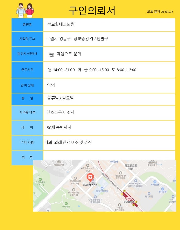 #광교간호학원, #용인간호학원, 수지간호학원, #수원간호학원, #용인간호조무사, #용인수지간호학원, # 용인국비지원, #국비지원간호학원, #내일배움카드, #상현역, #간호조무사, #국비간호학원, #흥덕간호학원, #병원취업, #병원실습 지난주에는 원장님과 함께 실습병원 지도차 실습생분들 만나고 왔어요^^ 라현 한방병원에 1년전에 갔었는데 이번에도 또 가게 되었네요~~^^ 1년전에 실습하셨던 분이 현재 이곳에서 간호조무사로 근무하시고 계시거든요~~ 벌써 5개월차래요~~ㅎㅎ 직원이 되신 선생님과 반갑게 인사 나눈뒤, 실습생과 이런저런 실습이야기 조무사선생님들 이야기 타학원 실습생 이야기등~~ 남은 실습 응원하며!! 학원으로 돌아왔....... <img src="https://blogthumb.pstatic.net/MjAyNjAxMjJfMTY3/MDAxNzY5MDYzNjc3NzAy.BlsdRqAcFD4Eu_agvjPhlFGaeDD-95TWYUs11UPSszgg.qyZ-EQ9VcXtNZXzluxxZHgEauJ5ZM2T4HvP33bLGze8g.JPEG/%B1%A4%B1%B3%C0%AA%B3%BB%B0%FA.jpg?type=s3" />