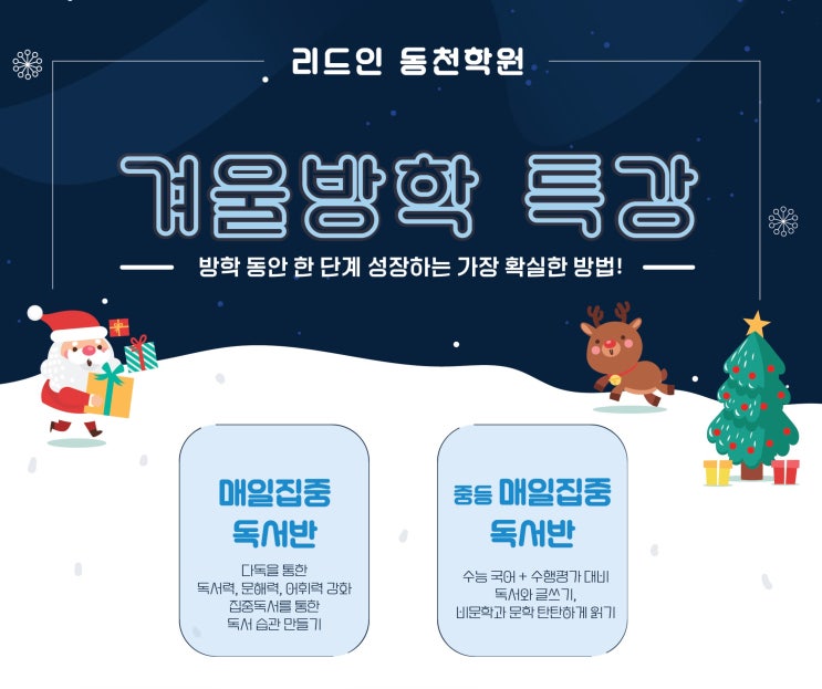겨울방학 매일 집중 독서반으로 책 읽기 습관 만들기. 동천동 리드인