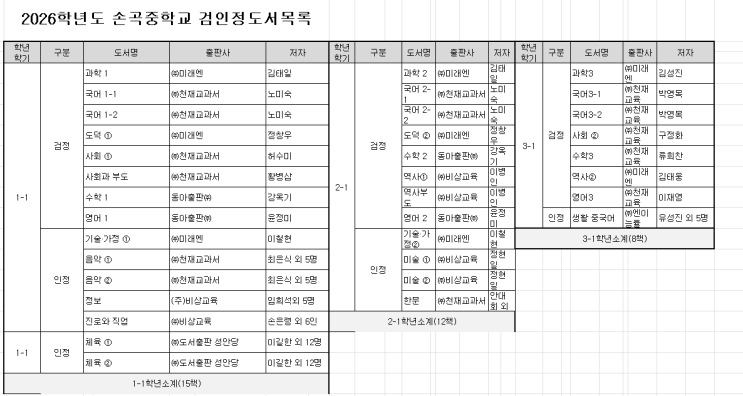 한빛·손곡·수지 중학교 교과서 & 학사 일정