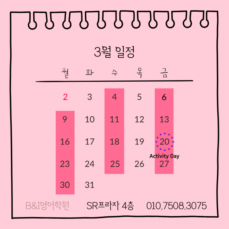 B&I영어학원 3월 일정 및 안내사항