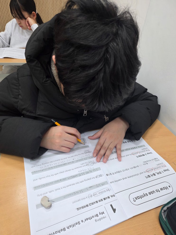 능률 딥독 교재로 하는 중등 영어 독해 중1·중2·중3, 독해는 ‘미리’ 잡아야 합니다 안녕하세요. 상담실장입니다. 학부모님들이 가장 많이 하시는 말이 있어요. “중학교 때는 단어랑 문법만 잘하면 되는 거 아닌가요?” 결론부터 말씀드리면, 그 생각 때문에 고등 영어에서 무너집니다. 그래서 길선생영어학원에서는 능률에서 나온 딥독(Deep Reading) 교재로 중등부터 ‘읽는 힘’을 만드는 수업을 합니다. 중1 학생에게: “영어 지문이 무섭지 않게 만들어야 할 때입니다” 중1은 영어 실력을 키우는 시기가 아니라, 영어에 대한 태도를 만드는 시기입니다. 이때 독해가 해석만 하다 끝나거나 문제 맞히기만 하면 영어는....... <img src="https://blogthumb.pstatic.net/MjAyNjAyMDlfMTUx/MDAxNzcwNjI0NzgyODMz.TYRw0zoaEDDpfG7CvCZNCneoGI49EH9rQZRbxT5ALRgg._bm1n1HnEesytIQ5QCot2KBJ4mHhtckLp98ujMPvGWAg.JPEG/24_%C1%DF%C7%D0_%BC%F6%B4%C9%B5%F6%B5%B6_1%B1%C7_%C7%A51%28%B0%ED%C7%D8%BB%F3%29.jpg?type=s3" />